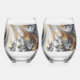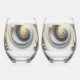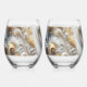 Abstract Modern Swirling Gold, Black and White Stemless Wine Glass