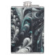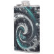 Abstract Modern Swirling Green, Silver and Black Hip Flask