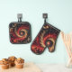Abstract Modern Swirling Red, Black and Gold Oven Mitt & Pot Holder Set
