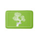 Abstract modern white circle tree and name lime gree bath mat. The focus of this design is a lovely abstract tree made of circles instead of leaves. It also includes a frame with personalised name.