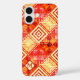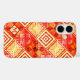 Personalized phone case featuring a festive geometric abstract pattern in warm colors with your custom monogram (optional). Beautiful as a Christmas gift or just because.