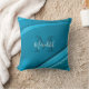 This beautiful throw pillow features an abstract swirly design in trendy teal shades. Personalise it with name in white calligraphy and monogram in matching dark teal font.