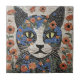 Abstract Mosaic Cat with Flowers Ceramic Tile