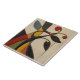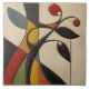 Embrace the allure of abstract art with this sophisticated ceramic tile, showcasing a harmonious composition of geometric shapes and organic forms. The piece features a rich palette of autumnal shades, from a deep slate blue to a warm harvest gold, a luscious pumpkin orange, and a vibrant cherry red, all set against a serene cream background with a delicate crackle finish. Dark ebony shapes create a striking contrast, lending a bold, contemporary edge to the design. This tile is a testament to the beauty of colour and form, making it a stunning addition to any room in need of a touch of modern elegance and artistic flair.