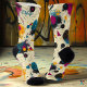 Elevate your style with these Abstract Motion socks, featuring a bold combination of teal, magenta, and yellow geometric shapes. The expressive design includes dynamic brushstrokes, circles, and triangles, all set against a cream background for a striking modern look. Perfect for art enthusiasts and creative individuals, these socks bring vibrant energy and a contemporary flair to any outfit.