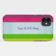 Modern pink, purple, green, and yellow Stripe Pattern Case-Mate iPhone Case. Personalise by editing the text in the text box or delete text for no monogram.