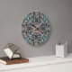 Ornamental rosette inspired by the spiky shapes and colours of a succulent garden highlighted with intricate gossamer lines. The black background creates depth and contrast amidst tones of dusty rose, sage blue, light moss green, and soft golden yellow. Change the background colour for unique rosette wall clock colour-matched to your space. ♡ Idyllfire