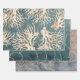 Three coordinating nature patterns in golden lined colours of amethyst and deep aquamarine.