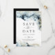 This abstract navy celestial save the date card is perfect for a modern wedding. The moody and elegant design features dark navy blue and a dusty slate blue watercolor with splashes of gold glitter, creating an outer space and the night sky feel.