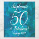 Abstract Ocean Blue Teal 50 and Fabulous Birthday Wine Label
