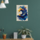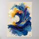 Abstract Ocean Wave Liquid Art Blue Gold Fluid Poster