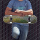 The artwork by ZoeSPEAK on this Skateboard deck is an original photograph of a wave rolling in from the Atlantic ocean as the setting sun shines through it, adding lovely yellow and pale pink colours to the blues and greens of the sea. Click customise to add text.