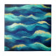 Abstract Ocean Waves Blue and Gold Watercolor Ceramic Tile
