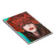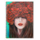 Abstract oil painting showing woman face and red r notebook