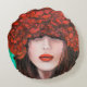 Abstract oil painting showing woman face and red r round cushion
