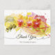 Artistic colour combination in yellow, green, orange and gentle pink and a calligraphy script thank you.