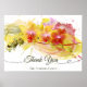 Artistic colour combination in yellow, green, orange and gentle pink and a calligraphy script thank you.