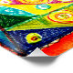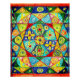 Vibrant geometric patterns fill the image, featuring circles, triangles, and swirls in a kaleidoscope of colours including blue, green, yellow, and red. The intricate design creates a sense of symmetry and balance.