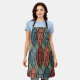 This apron has an art deco design of ovals with abstract designs within each in retro colours of pink and blue.