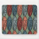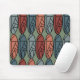 This mouse pad has an art deco design of ovals with abstract designs within each in retro colours of pink and blue.