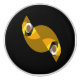 A fun abstract art design of the eyes of an owl in the dark with his head twisted sideways.