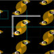 A fun abstract art design of the eyes of an owl in the dark with his head twisted sideways.