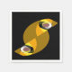 A fun abstract art design of the eyes of an owl in the dark with his head twisted sideways.