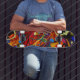 Whether you’re doing grinds on the half-pipe or kickflips in the street, this competition shaped board has supreme pop! Our decks are made of the best quality hard-rock maple and with our one-of-a-kind printing process; you get the best skateboard available in the world.