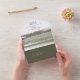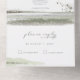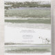 A paint strokes watercolor in sparkling shades of olive green with splashes of lavender accents the pieces of this beautiful wedding suite. The all-in-one wedding invitation and RSVP shown here also features elegant handwritten calligraphy and a template to easily add your own names and event details. Search ID886 to see other pieces and colour choices for this set.