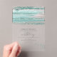 A paint strokes watercolor, in sparkling shades of sea glass green with splashes of soft blush pink, accents the pieces of this beautiful wedding suite. The transparent acrylic wedding invitation shown here also features elegant handwritten calligraphy and a template to easily add your own names and event details. Search ID886 to see other pieces and colour choices for this set.