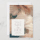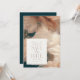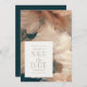 Abstract painted modern teal cream terracotta chic wedding save the date card. Modern on trend serif text and teal backer.
