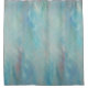 Often strokes of soft blue and multi coloured hues abstract art shower curtain. Ideal for a modern bathroom. Modern soft blended painting in acrylics by Sarah Trett. www.sarahtrett.com for www.mylittleeden.com