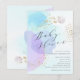 Modern abstract boy baby shower design featuring a watercolor background in soft blue and decorated with purple & blue pastel circles and gold sprinkles. Visit our shop to view our collection of matching products.