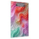 Bright pastel layers create a flowing wave pattern with vibrant pink, green, and purple hues. This abstract design evokes creativity and multidimensional depth.