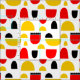 An original seamless abstract pattern made up of bold hand drawn half oval and semi circular shapes in red, amber and black on a white/transparent background. This pattern design uses a large high resolution pattern tile image allowing the pattern to be made larger, or smaller.