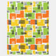 An original hand drawn seamless abstract pattern made up of many flat colour or tonal shapes decorated with additional lines and dots.