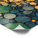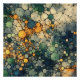Our artwork features an abstract pattern design with vibrant hues of deep yellow, green, and shades of grey, with an additional design of the Voronoi structure in fine black lines and black nodes, in artistic style.