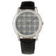 This is a Habatour Creations men's classic watch, with leather band, decorated with an authentic modern abstract digital pattern design