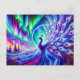 abstract peacock in a winter landscape beneath the glowing northern lights. This colorful oil painting captures the cool elegance of winter combined with the magical beauty of the aurora.