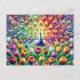 Abstract Peacock with Colorful Tulips in Paint Postcard