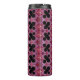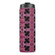 This thermal tumbler features a fractal pattern with a black percent sign on an abstract red, pink, and purple background.