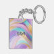 Abstract Pink Lilac Turquoise Gold Key Ring
