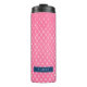 This thermal tumbler features a pink line strokes pattern with a blue rectangle on the front for you to add your name. It will also make great personalised gifts for your party, events or even for bridesmaids.