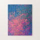This abstract puzzle features an alcohol ink style print in shades of pink, blue and purple.