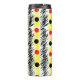Abstract Scribble Polka Dot Pattern Thermal Tumbler designed by Nisha Prabhu CuteHomeGifts. Colourful abstract pattern featuring black vertical stripe scribble and black red colour polka dot on yellow background.