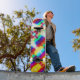 Introducing the Never Bored-walk design! Conjuring echoes of arcade machines, street performers, and a bustling crowd mixed with a warm breeze and salty sea air. This bold design features an abstract, Popart inspired primary coloured rainbow.