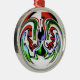This artwork presents two stylised, abstract profiles facing each other, created using swirling lines of dynamic colours. The background is distinctly divided, with one half featuring a deep black and the other a bright white. At the meeting point of the two profiles, a small, circular area of blended colours adds an intriguing focal point.