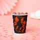 Abstract, pumpkin faces on black Halloween paper cups. Great for a Halloween party or celebration.
