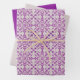 Gift Giving Package Wrapping Paper set of 3 sheets printed with Abstract Purple Orchid Flower Design Pattern Art graphic Illustration with a thistle grey purple pale background contrast colour by TheFabricSeal print on demand shop at Zazzle.com #ZazzleMade ©️Original. https://www.zazzle.com/store/thefabricseal