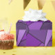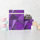 Inspired by stained glass, this stylish geometric design contains polygons in various shades of purple outlined in black. A lavender triangle slashes in from the upper right with an array of progressively darker purple quadrangles and other shapes spiralling around it from light to dark. Two dark purple shapes ground the left side of the original design.